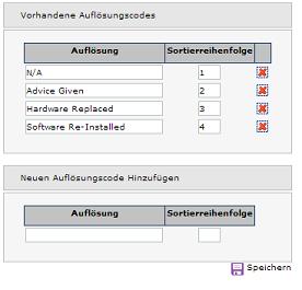 Mit dieser Option können Sie eine Liste der Auflösungscodes erstellen. Wenn ein ServiceDesk-Operator einen Objekt schließt, kann er aus der vordefinierten Liste einen angemessenen Code wählen.