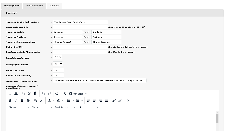 Wenn der von NetSupport ServiceDesk verwendete Jargon nicht angemessen ist, können Sie ihn auf Begriffe ändern, die innerhalb von Ihrer Organisation leichter verständlich sind. Sie ziehen es z. B. vielleicht vor, einen Vorfall eine Hilfeanfrage zu nennen.