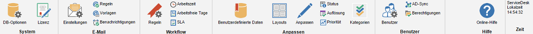Die Benutzeroberfläche von ServiceDesk besteht aus folgenden Bereichen: